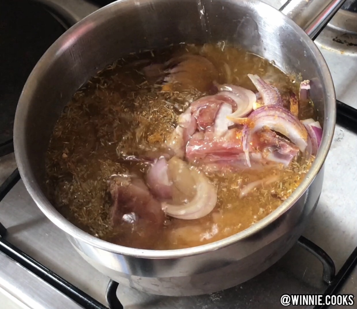I did not bleach my palm oil. I just allowed it to get a little hot and added my onions to fry as it got hotter.